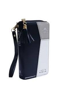 Biblia RVR 1960 Chequera Negro Beige Blanco Símil Piel con Índice y Cierre