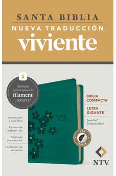 Biblia NTV Compacta Letra Gigante con Filament Símil Piel Turquesa Floral Índice Letra Roja